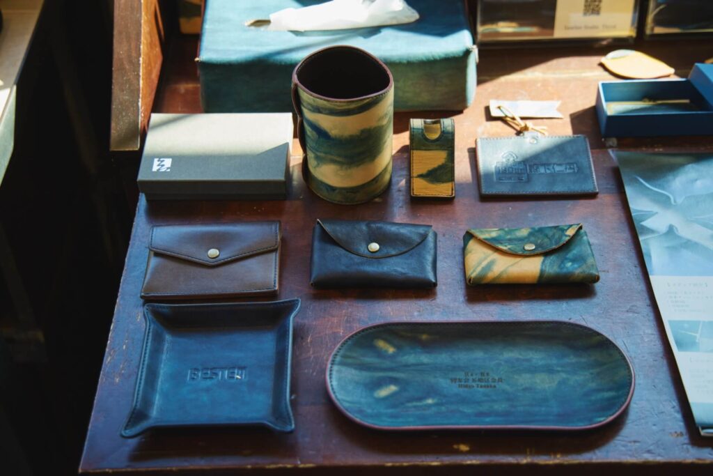 地元の歴史・文化とレザーをコラボレーション。「天然藍染めレザー」を開発し話題に。現在までの総取材回数50回超。代表取締役三島進さんは、革のコンクールにて 2020年バッグ部門1位 、翌年2021年にはインテリア部門2位を獲得した。