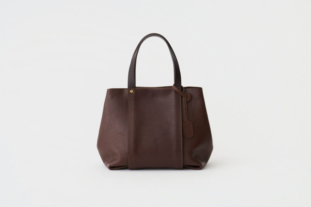 กระเป๋าโท้ททรงอวบอิ่มดูน่ารักน่าใช้ แผ่นหนังด้านหน้าหุ้มรอบตัวกระเป๋าด้วยหนังหนาที่เชื่อมมาจากหูหิ้ว ทำให้โครงสร้างแข็งแรง ไม่เสียทรงง่ายแม้ใส่ของหนัก เมื่อปลดกระดุมแป๊กที่ข้างกระเป๋าออกจะสามารถเพิ่มความจุให้ใส่ของได้มากขึ้น